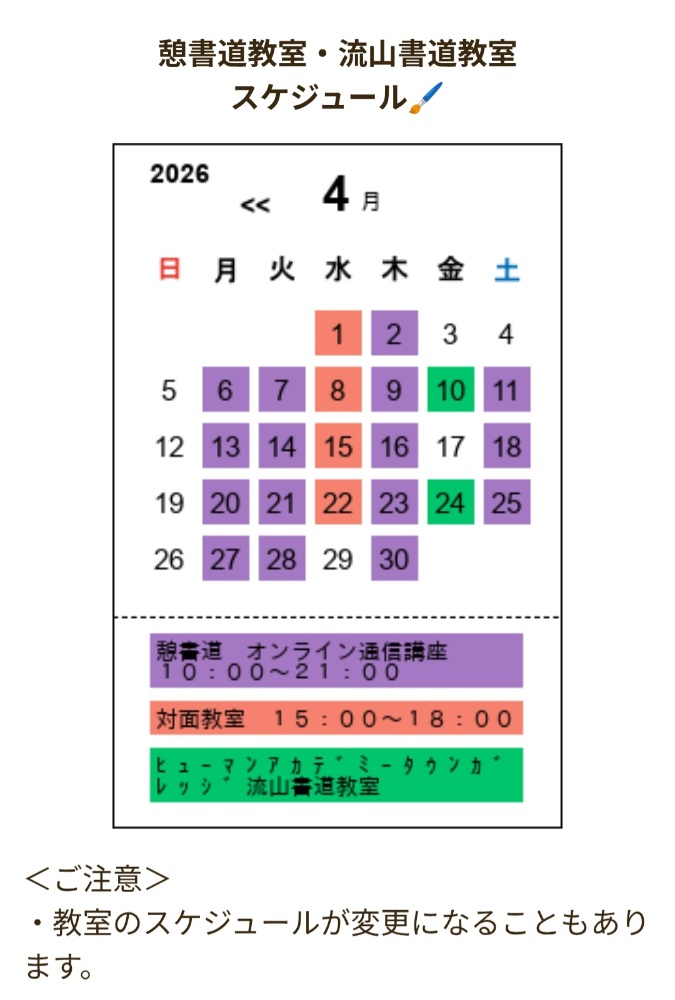 ・教室のスケジュールが変更になることもあります。